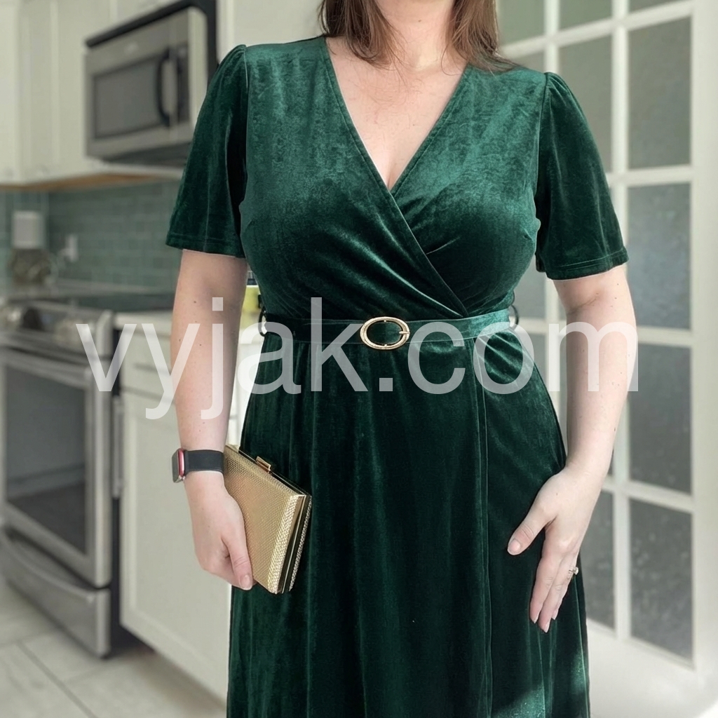 Did I need another dress? No. Did I need this one for a wedding? Absolutely. 😍 The velvet material feels luxe, the emerald color is gorgeous, and it’s way more flattering than I expected. I got so many compliments wearing it. The only con for me is the deep V-cut. I have a larger chest, so I layered a tank underneath and it worked perfectly. Other than that, this dress exceeded my expectations! The belt was also a gift. thank you :) 10/10 would recommend.