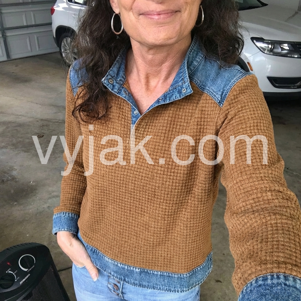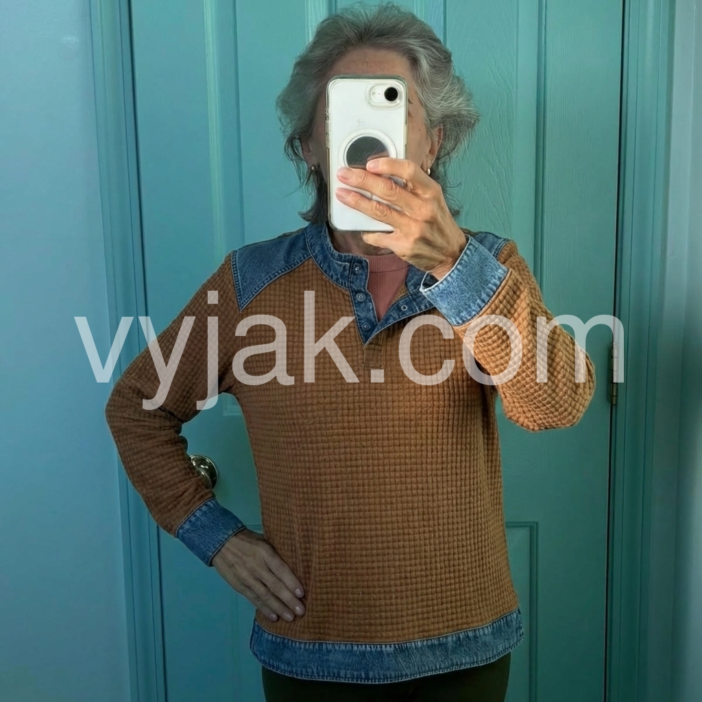 I’m really impressed with this top. The waffle pattern gives it a unique look, and the denim contrast makes it stand out in a good way. I also like that it’s easy to match with different outfits—perfect for someone who wants both style and comfort.