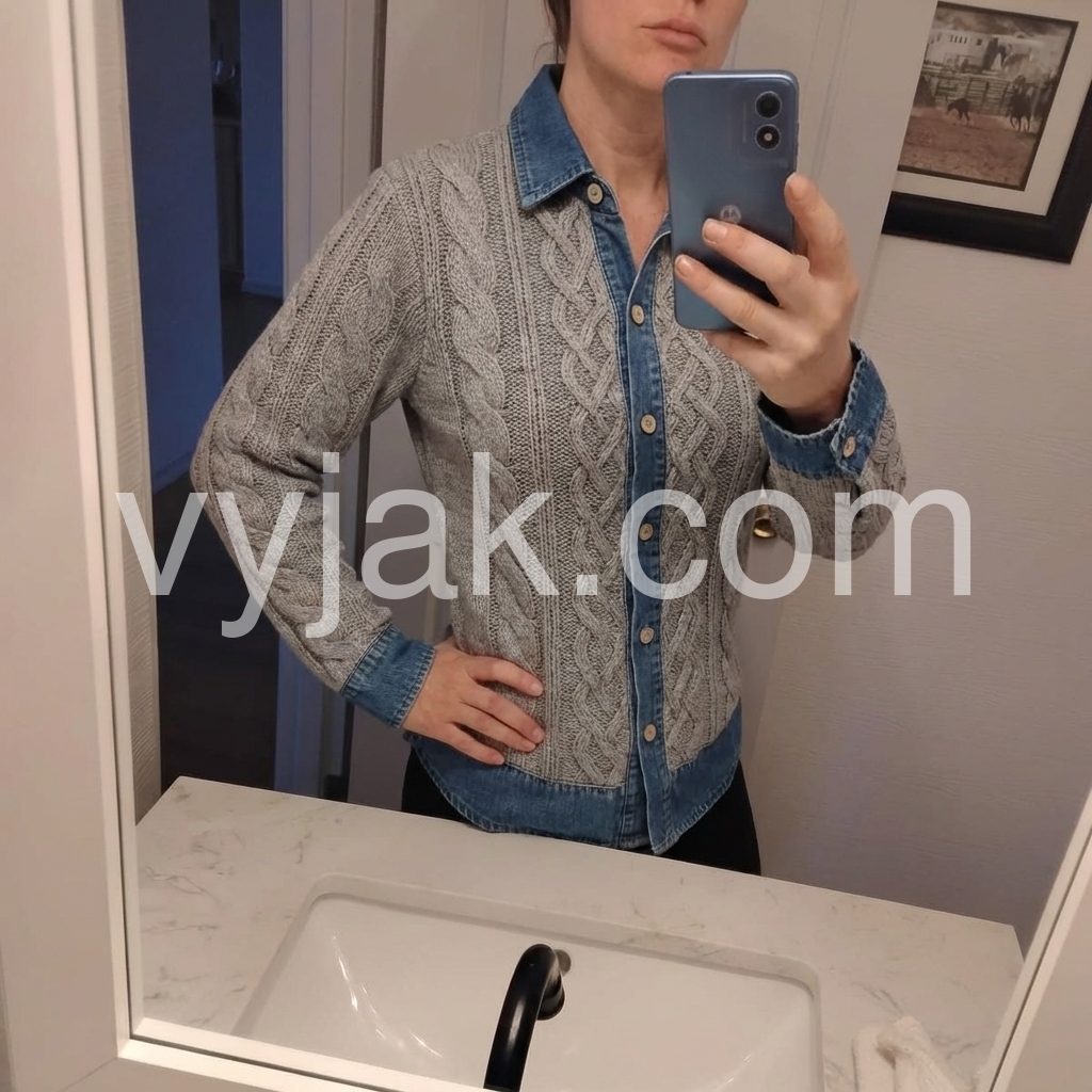 I’m really happy with this purchase. The knit texture is thick enough to feel warm, and the buttons add a classic touch. What I love most is the contrast between the gray sweater body and the blue denim neckline—it makes the top look more layered and fashionable. It’s become one of my go-to pieces.