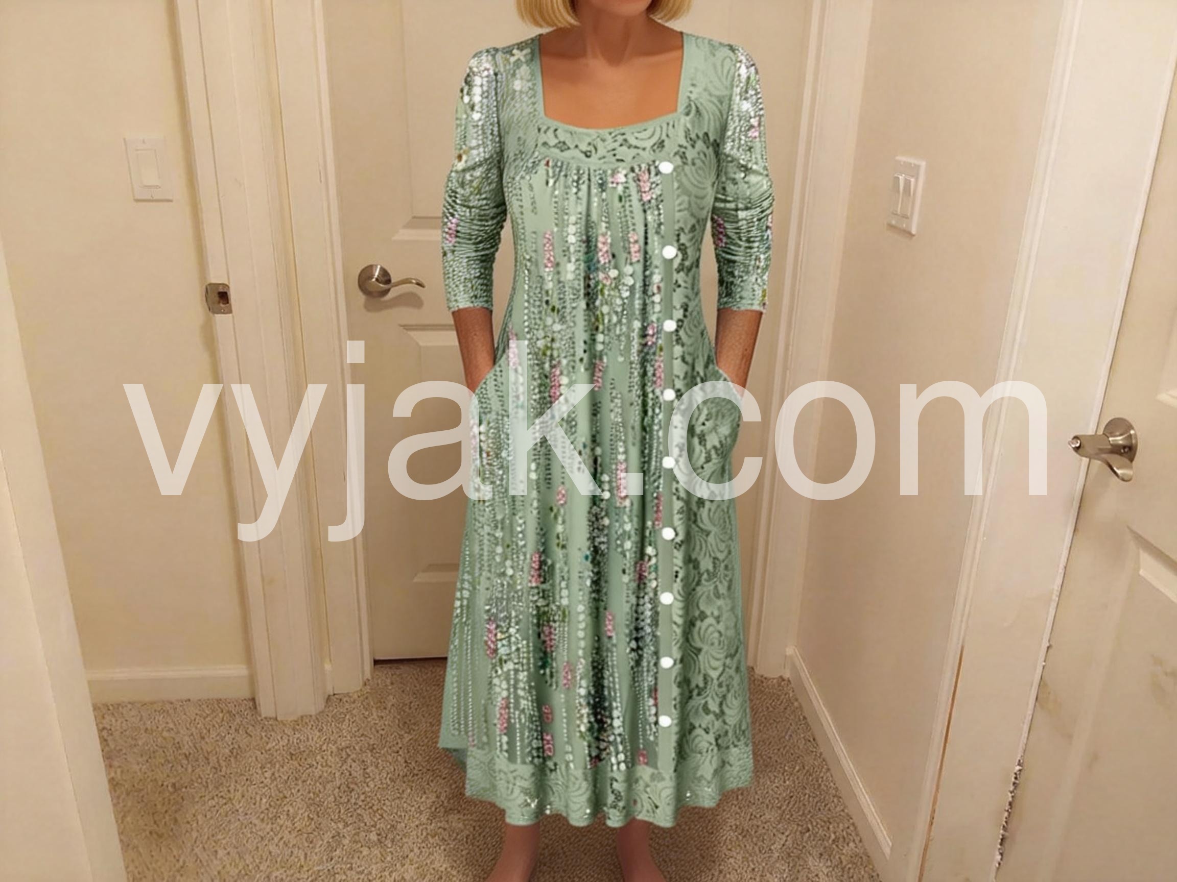 Color matched perfectly with the image online, sizing was just right, as expected. Not too long. This dress is so extremely soft (cloud like softness) and comfortable, it has great stretch and melts into my figure and curves while covering and erasing any imperfections. This dress held its form perfectly. It didn't stretch through the day and after a few hours didn't become unflattering and loose though. Style it up with maybe a belt and some flats - you will not be disappointed.