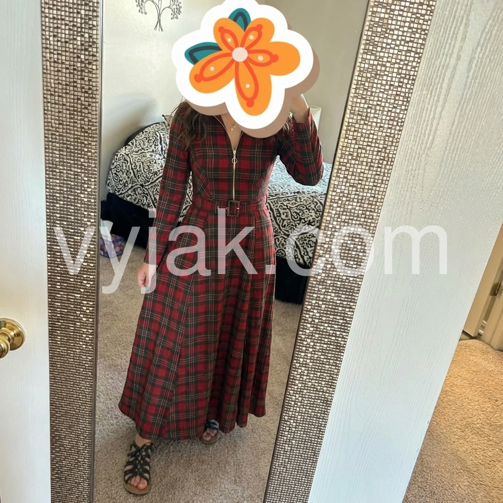 I bought this dress for a special occasion, and it exceeded my expectations. The plaid pattern is bold and stylish, and the long sleeves add a sophisticated touch. The seams and fit look carefully designed, especially around the waist where the belt sits nicely. Even after hours of wear, it feels comfortable and breathable. It instantly made me feel confident and chic.
