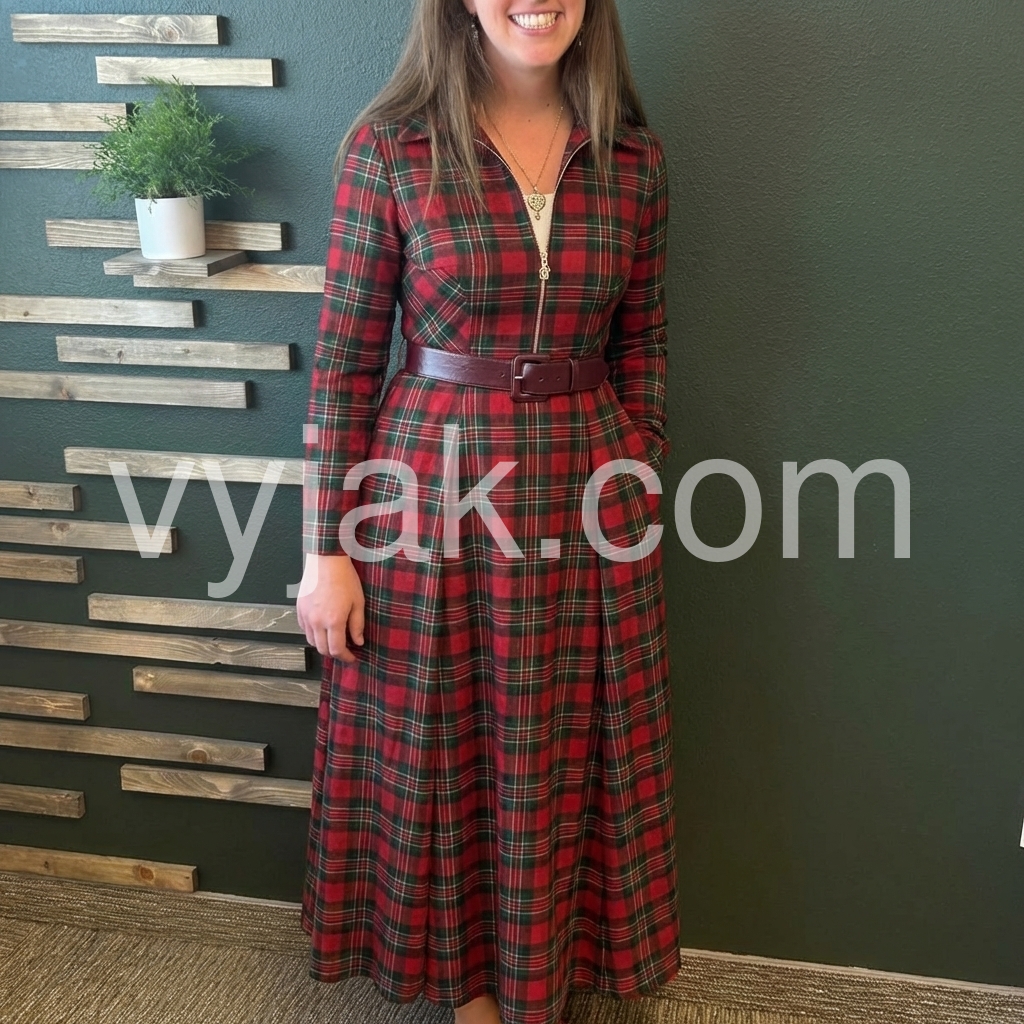 Elevate your wardrobe with this striking red plaid maxi dress, designed for those who appreciate timeless style with contemporary flair. The full-length silhouette offers sophisticated coverage, while the zip front closure provides effortless dressing and versatile styling options. Long sleeves deliver warmth and elegance, making this piece ideal for layering or wearing solo across seasons. The classic plaid pattern adds visual interest and pairs seamlessly with boots, sneakers, or heels depending on the occasion. Perfect for casual outings, professional settings, or weekend gatherings, this dress combines comfort with refined aesthetics for a polished everyday look.
