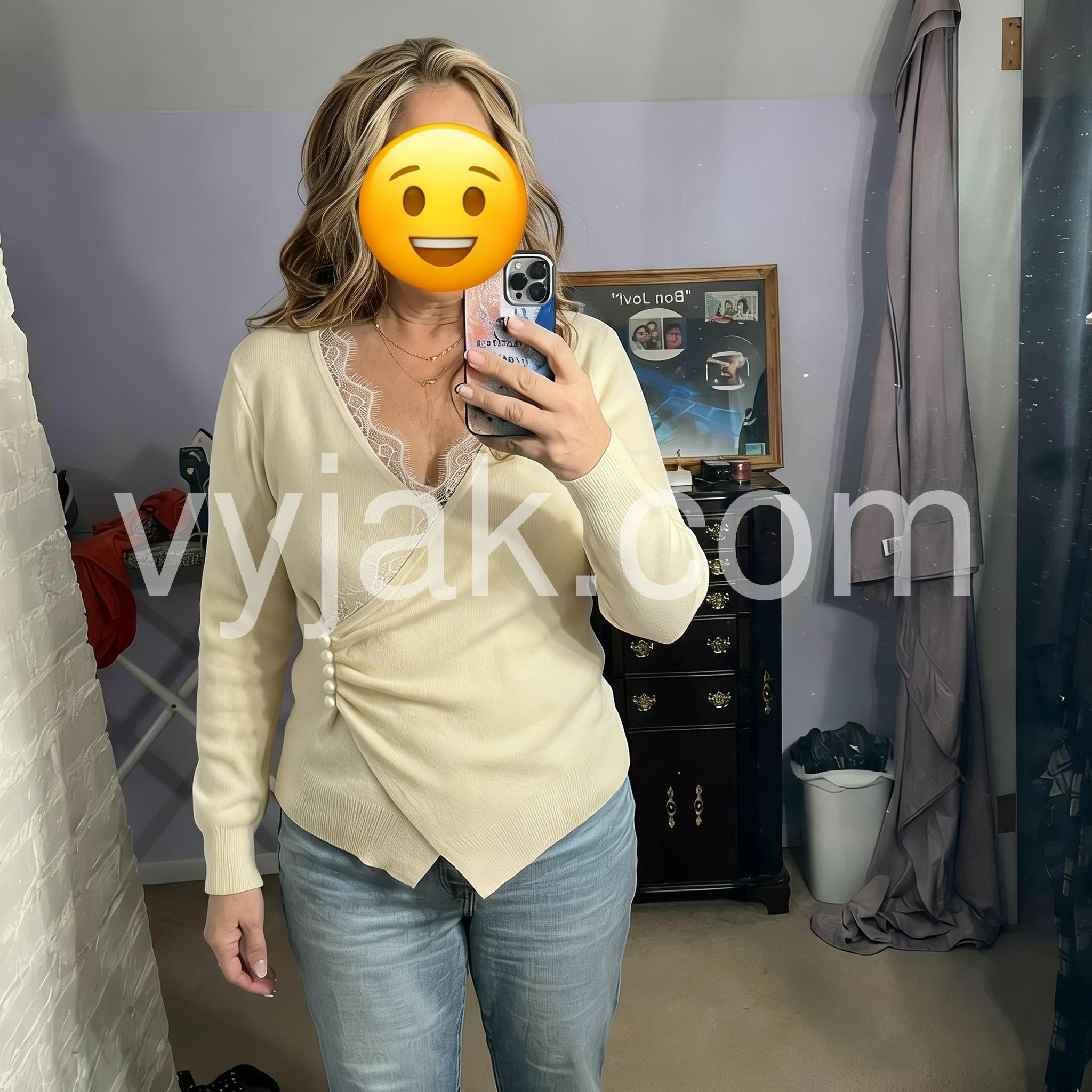 Elevate your knitwear collection with this refined wrap sweater, where timeless design meets contemporary styling. The delicate vintage lace trim detailing adds an unexpected sophistication to the clean, minimalist silhouette, creating a versatile piece that transitions seamlessly from casual to polished occasions. Crafted with careful attention to construction, the wrap design offers flattering draping and adjustable fit, while the plain knit base ensures effortless coordination with your existing wardrobe. A modern essential with vintage-inspired accents.