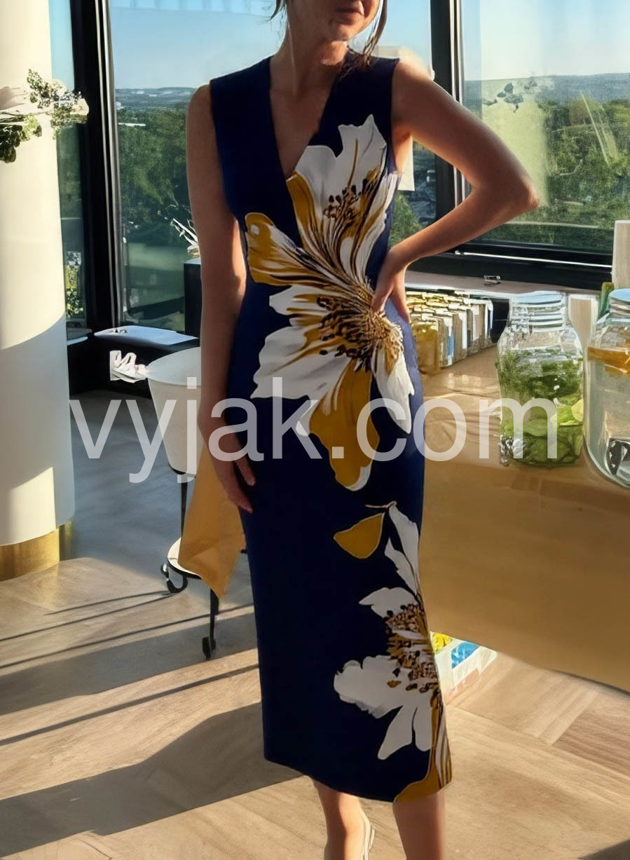 Picture yourself gliding into a garden soirée, turning heads with effortless grace. This sleeveless maxi dress features an enchanting floral print that whispers sophistication, anchored by a refined V-neckline that flatters every frame. The A-line silhouette flows like liquid poetry, while the luxurious rayon-elastane blend—60% rayon, 40% elastane—drapes with breathable elegance against your skin. From sunset weddings to upscale brunches, this dress adapts to your most memorable moments. The sleeveless cut offers freedom of movement, while the maxi length commands presence. Machine washable for effortless care, it's the investment piece that earns its place in your wardrobe season after season. Discover your signature look. Choose your size and step into timeless elegance.