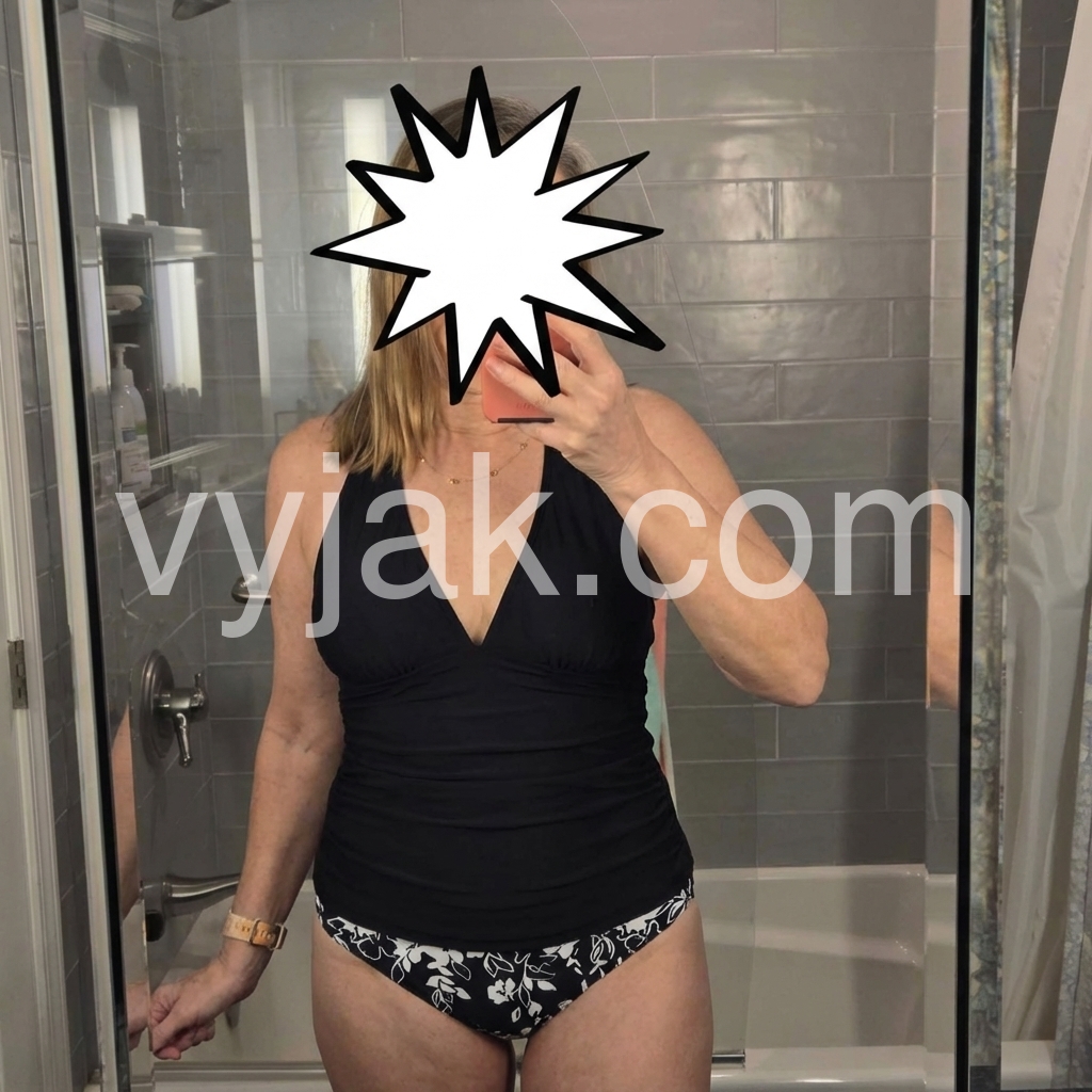 I like this suit a lot. It's comfortable and it masks my belly a bit. I tried a bunch of one pieces but they're all tight and emphasized the belly while making my backside look flatter than it is. Two piece suits are great and preferable when it's hot out.