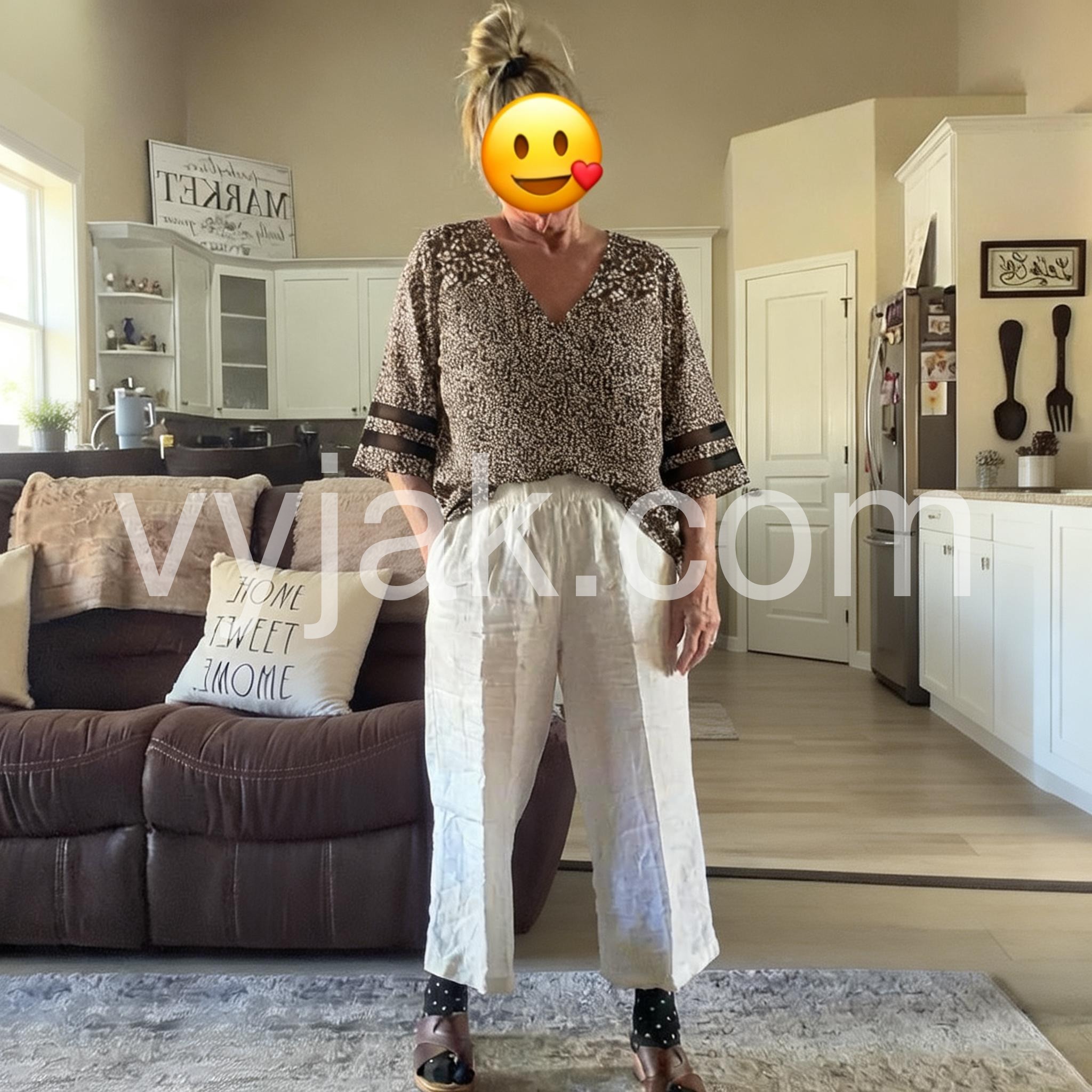 This blouse is so comfortable and lightweight. The v-neck is just the right depth and the sheer cutouts on the sleeves add such a fun, unique touch. True to size and very flattering!