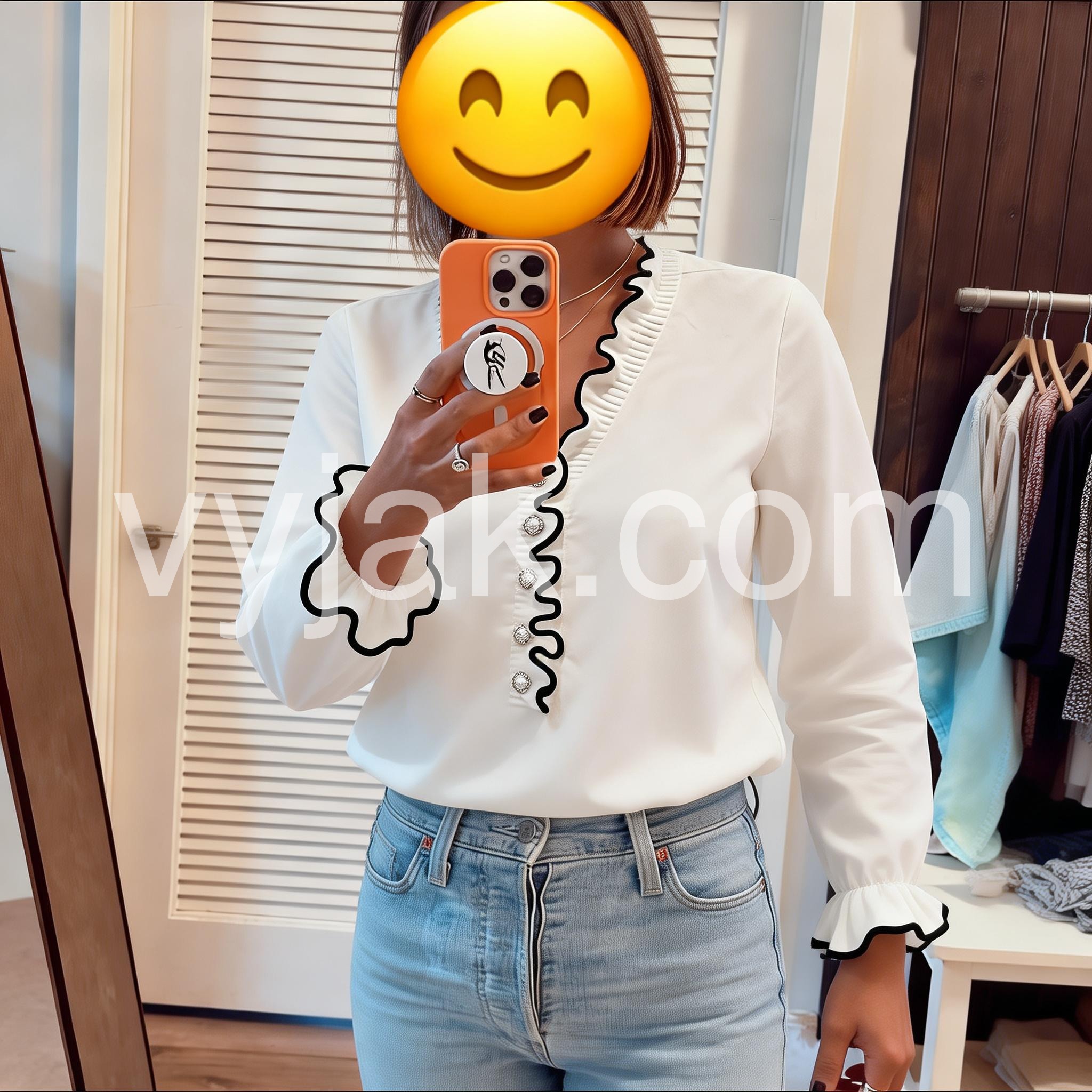 Beautiful top for work or a nice dinner out. The pearl-like buttons add such an elegant touch, and the scalloped edges really make it stand out. I received so many compliments the first day I wore it.