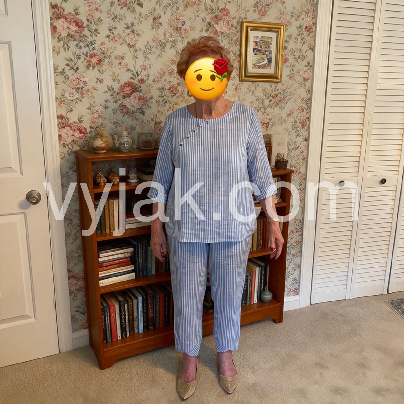 A wonderful outfit that is both modest and stylish. The sleeves cover my upper arms perfectly, and the cropped pants hit right at the ankle. Very classy and comfortable.